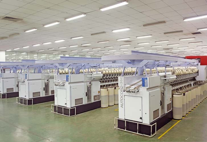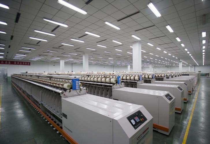 棉紡工廠以生產(chǎn)純棉高檔紗線為主,品種涵蓋精梳、氣流紡、緊密紡、賽絡(luò)紡、竹節(jié)紗、股線等,紗線品質(zhì)達(dá)到烏斯特2007公報(bào)5%—25的水平,擁有從德國(guó)、瑞士、日本、意大利等國(guó)家引進(jìn)的清梳聯(lián)、并條機(jī)、精梳機(jī)、自動(dòng)絡(luò)筒機(jī)、氣流紡、倍捻機(jī)等紡紗設(shè)備及配套粗細(xì)聯(lián)、長(zhǎng)機(jī)集體落紗、中央控制制冷空調(diào)、數(shù)據(jù)聯(lián)網(wǎng)中控系統(tǒng)等輔助設(shè)施,具有生產(chǎn)流程自動(dòng)化程度高、用工少、成紗質(zhì)量?jī)?yōu)良、環(huán)境好等特點(diǎn),產(chǎn)品品質(zhì)深受市場(chǎng)認(rèn)可和贊譽(yù)。