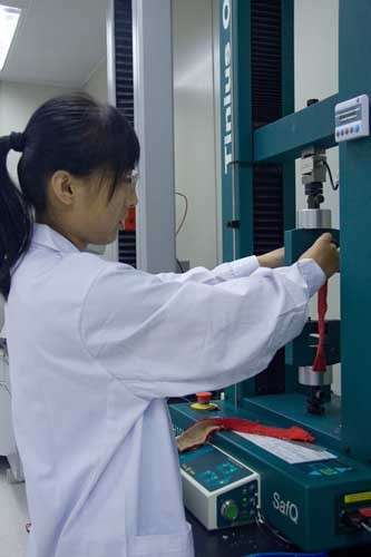 技術(shù)中心設(shè)置了綜合實(shí)驗(yàn)室、化學(xué)實(shí)驗(yàn)室等檢測(cè)實(shí)驗(yàn)室,可進(jìn)行包括甲醛含量、可分解芳香胺、可萃取重金屬、織物阻燃性能、織物外觀測(cè)試、線圈強(qiáng)力及各種牢度等80多個(gè)項(xiàng)目。2009年,技術(shù)中心實(shí)驗(yàn)室通過了國(guó)際知名企業(yè)—迪卡儂公司的國(guó)際實(shí)驗(yàn)室認(rèn)證,2010年通過了國(guó)家實(shí)驗(yàn)室認(rèn)證審核。