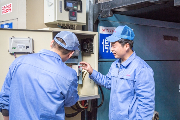 李騰的業(yè)務(wù)技能迅速提高。他改進(jìn)后的脫水機(jī)缸蓋、電柜降溫風(fēng)扇等設(shè)備,操作簡單、效益可觀,受到工友好評。很快,李騰便由一名普通設(shè)備維修工人成長為設(shè)備主管。