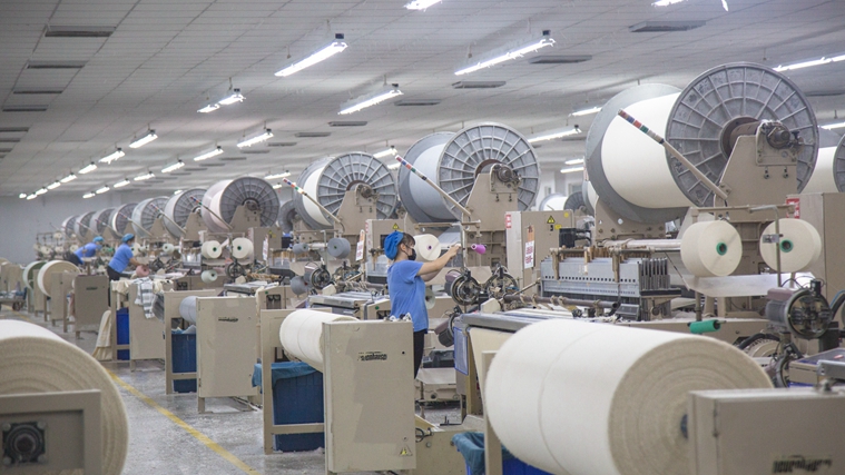 孚日集團家紡織造車間生產(chǎn)中。