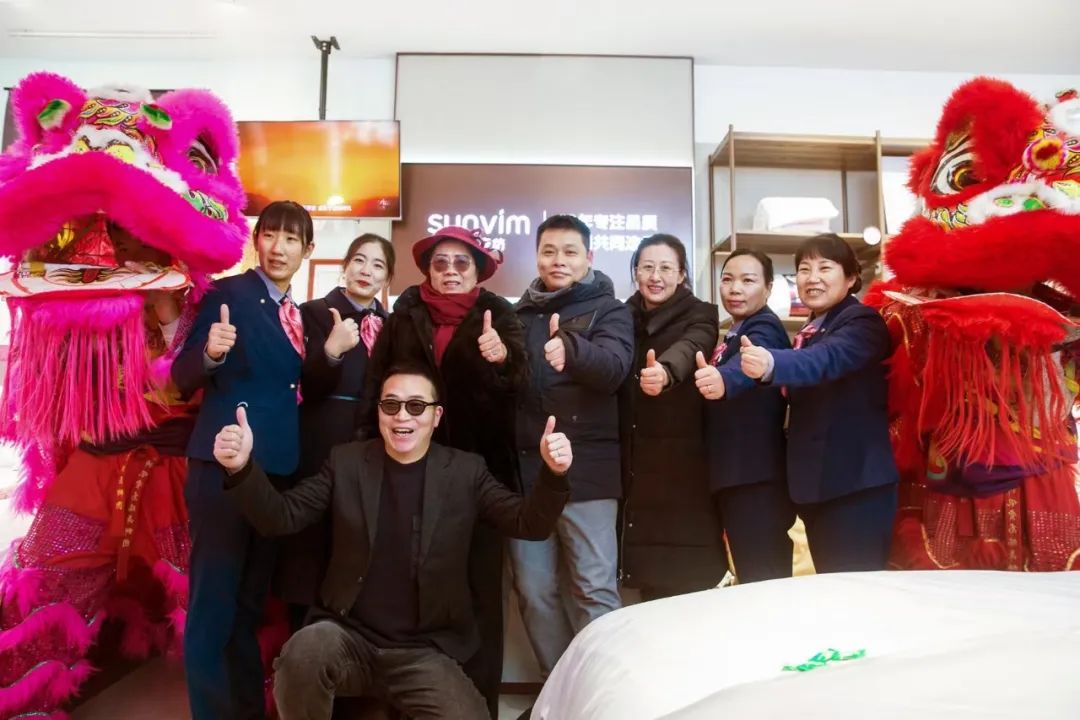 伴隨著氣勢磅礴的鑼鼓聲及吉祥舞獅表演,孚日集團總經理吳明鳳女士、孚日家紡總經理馬偉先生、品牌總監(jiān)梁勝先生等企業(yè)領導共同為新店開業(yè)剪彩,預示著孚日家紡百店盛放計劃榮耀開啟新的篇章。