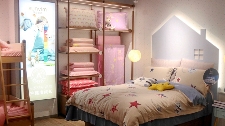 更上一層樓,盛裝迎客的二樓讓顧客感受到從愛(ài)情到親情的延續(xù)與升華。匠心獨(dú)運(yùn)的家紡件套,童趣盎然的嬰童家紡,讓顧客信步間盡享家的溫暖、舒適與雅致。