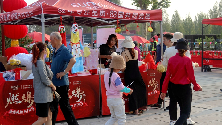 盛世華誕,普天同慶。孚日家紡聯(lián)合紅高粱小鎮(zhèn)舉辦“國(guó)慶七天樂(lè)”特賣活動(dòng),超多產(chǎn)品大放送,多重特惠享不停,吸引了眾多游客爭(zhēng)相選購(gòu)。